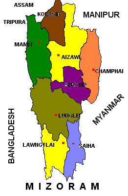 Mizoram - Blue mountains, deep, narrow valleys, the gentle gurgle of streams, cascading waterfalls in lush tropical forests, a gorgeous array of flora and fauna. A land whose tranquil loveliness is quite unmistakably, the personal creation of Mother Nature herself. Time stands still in the Lushai hills of Mizoram. All you'll notice first is the serenity, the hushed wonder, the profound peace that makes them seem quite enchanted, makes them appear a place where man is almost a misfit. But look closer and you will find quite hamlets nestled amidst this most varied terrain. Hamlets inhabited by a people living in perfect harmony with the natural bounty of Mizoram, a people unique in their customs, beliefs, practices and lifestyles.
